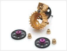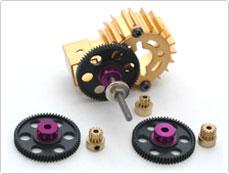 The gearbox can be mounted using a 10x10mm hardwood stick and comes with 3 different gear ratio.