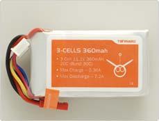 | 3-cells 360mAH | 11.1 | 58 | 31 | 14 | 37 | 20C(7.2A) | 30C | JST |